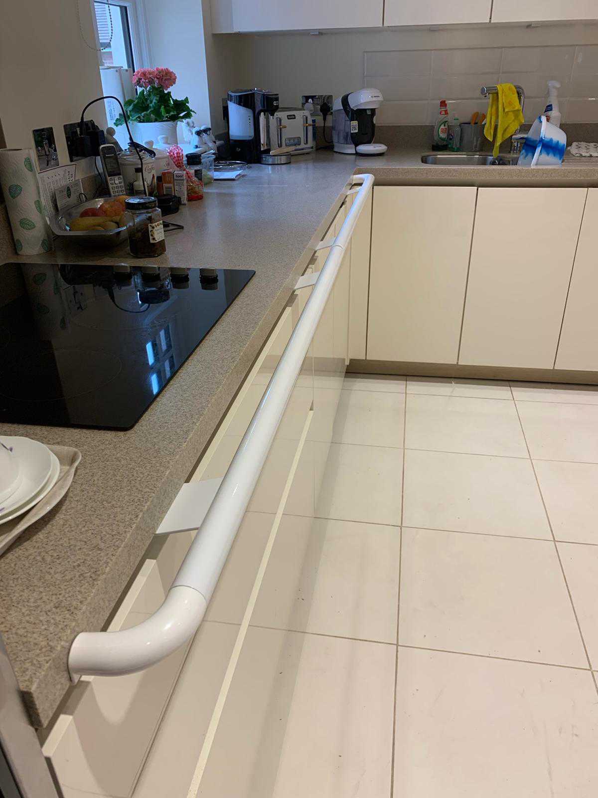 Fitting Grab-A-Rail in strategic places in the kitchen - near the sink, the kettle, microwave enhances safety and restores confidence. The rails were installed by Grab A Rail Fitting Solutions throughout the kitchen 30 minutes prior to the video being made. Due to age and health issues, the gentleman struggles with mobility and balance, he had previously fallen in his kitchen. His family contacted Grab A Rail and our rails were supplied within seven days. As you watch the video you can see how his confidence grow with each step as he uses the rail. Install before a fall. Grab-A-Rail.